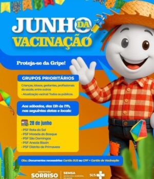 A campanha Junho da Vacinação contra a gripe continua mobilizando as unidades de saúde de Sorriso. Neste sábado, 28 de junho, acontece o terceiro plantão especial da ação, com atendimento das 13h às 17h em cinco pontos estratégicos: