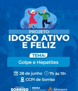 O programa “Idoso Ativo e Feliz” realizará mais uma edição neste sábado, 28, no Centro de Convivência da Pessoa Idosa (CCPI). A ação será realizada das 7h às 11h e contará com uma programação diversificada voltada à promoção da saúde, prevenção de doenças e incentivo à prática de atividades físicas, tudo pensado especialmente para o público da terceira idade.