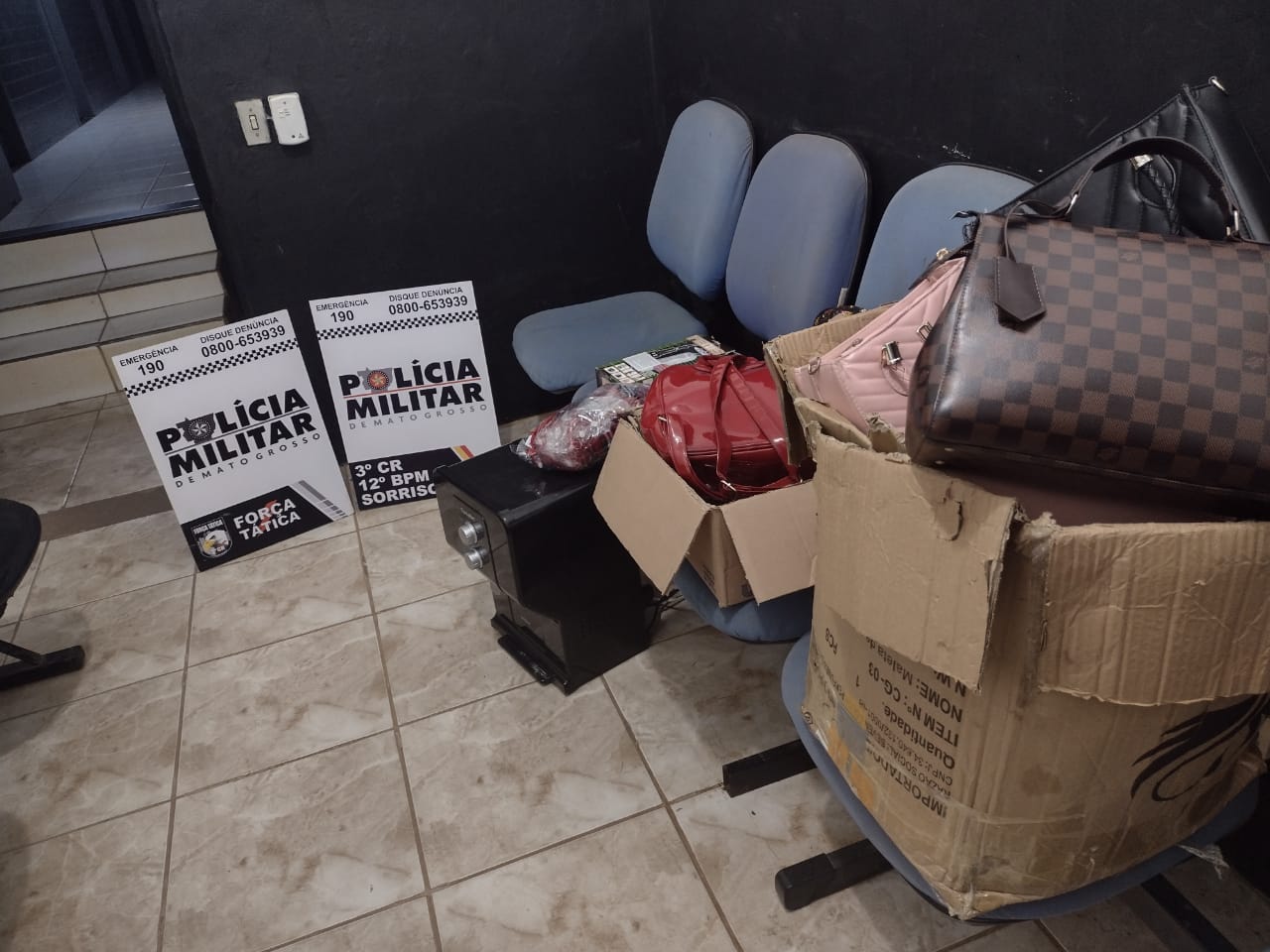 Diante dos fatos foi dado voz de prisão aos três suspeitos, sendo autor dos furtos e receptadores e os conduzimos a delegacia de Polícia Civil para demais providências, juntamente com todo material recuperado, sendo ele 14( quatorze) bolsas, R$2.958,50 ( dois mil e novecentos e cinquenta e oito reais e cinquenta centavos), 07 (sete) notebook’s, 02 (dois) bebedores de água), 01 (uma) mochila preta contendo diversos produtos de maquiagem e 01(uma) caixa de papelão contendo diversas peças de roupa.