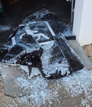 Segundo informações, os suspeitos tentaram arrombar uma porta lateral com um facão, porém não obtendo êxito, os mesmos quebraram o vidro e entraram no local.