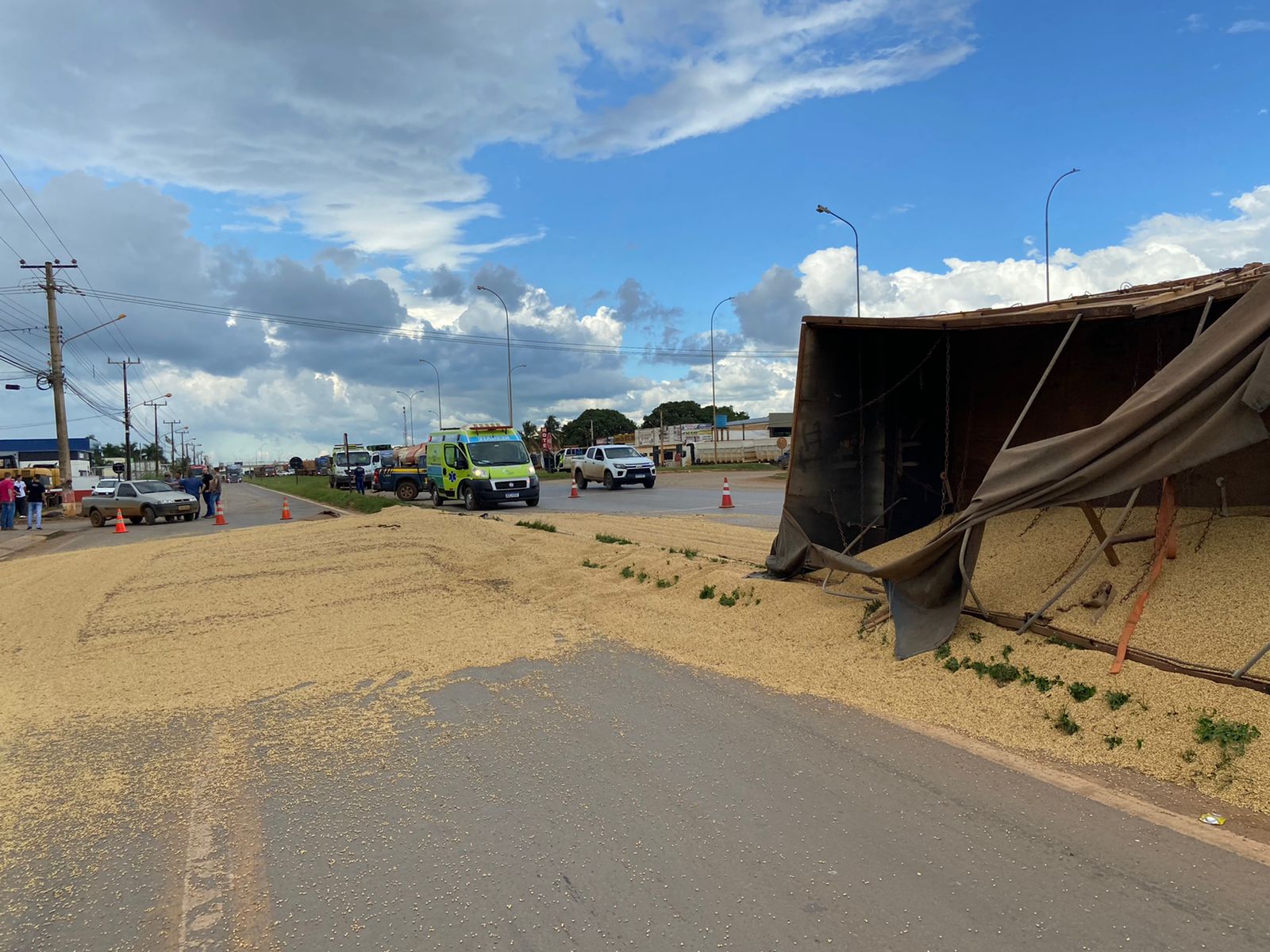 N tarde desta sexta-feira(04), um caminhão bitrem tombou nas proximidades da rodoviária de Sorriso, na Br163, momento em que seu condutor tentou fazer um retorno próximo a rodovia.