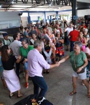 Durante o baile, o prefeito Alei Fernandes fez questão de cumprimentar todos os participantes e reforçou o compromisso de cuidar e valorizar o público da terceira idade.