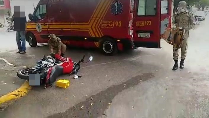 O condutor da motocicleta foi socorrido ao atendimento médico com possível fratura na perna, já a mulher que o acompanhava sofreu apenas algumas escoriações.