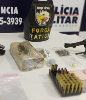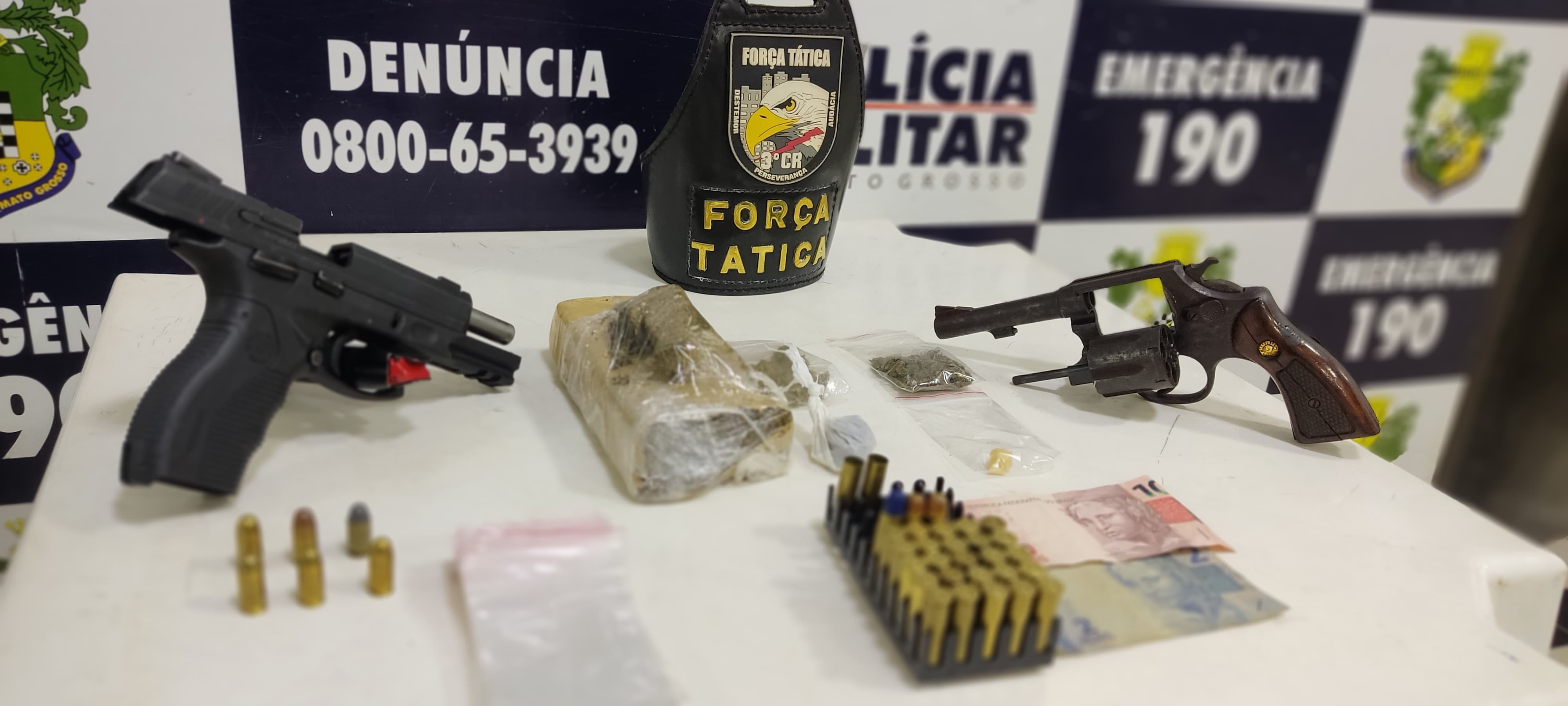 No local foi aprendido duas armas de fogo e uma quantidade de entorpecente.