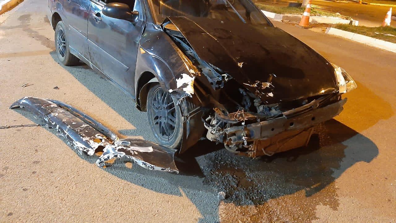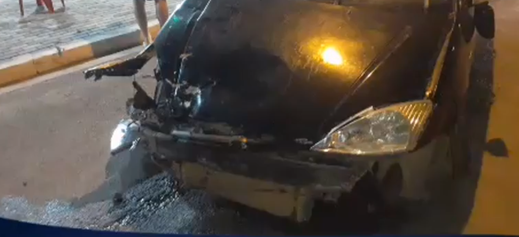 O veículo teve sua parte dianteira destruída, onde seu condutor acabou fugindo do local sem prestar socorro.