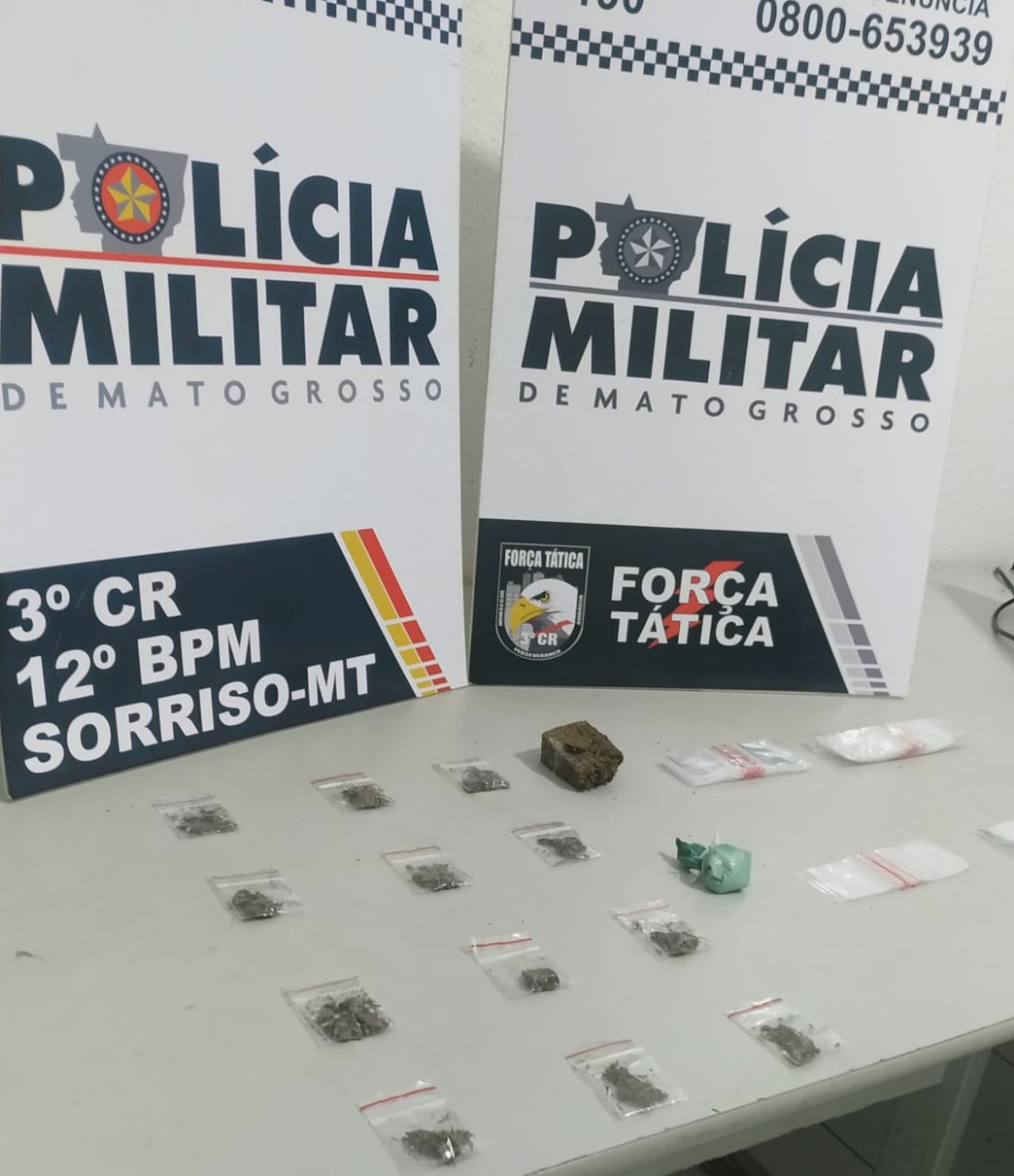 O suspeito informou que em sua residência haveria mais entorpecentes. Portanto, durante a revista domiciliar autorizado pela sua genitora, foram encontrados mais (08) porções de substância similar a maconha, (01)uma porção considerável de substância similar a maconha e uma porção considerável de substância similar a cocaína.