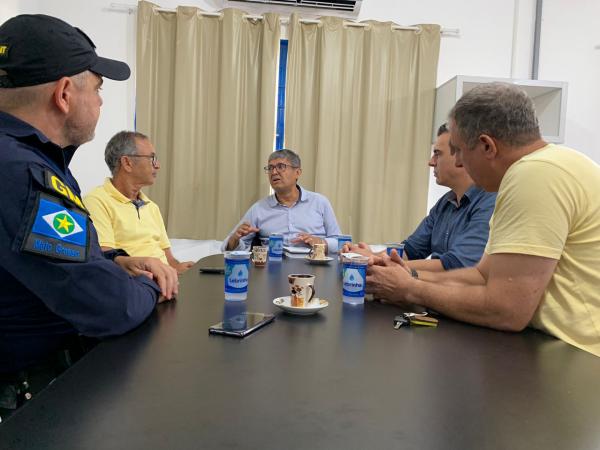 Avaliar o trabalho que vem sendo desenvolvido pela Guarda Municipal de Trânsito (GM) com a população da zona rural de Sorriso. Foi com este objetivo que o secretário de Segurança Pública, Trânsito e Defesa Civil, José Carlos Moura recepcionou o vereador Zé da Pantanal, o secretário de Agricultura Familiar e Segurança Alimentar, Marlon Zanella, e o adjunto da pasta, Enivaldo Golmini na manhã desta sexta-feira (24 de fevereiro).
