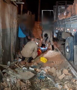 Um homem de 53 anos foi soterrado por uma pilha de tijolos em uma obra localizada na Av. Los Angeles em Sorriso.