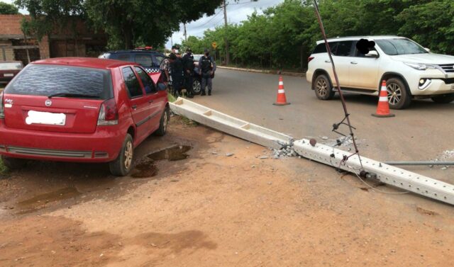 Por volta das 10h desta manhã, um poste foi derrubado por um veículo na Av. Claudino Francio.