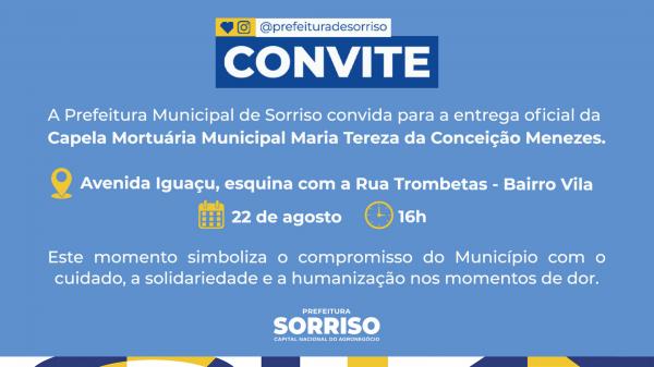 A Prefeitura de Sorriso irá inaugurar, nesta semana, duas capelas mortuárias que somam um investimento de aproximadamente R$ 1 milhão. Os novos espaços atenderão famílias tanto na sede do município quanto no interior.