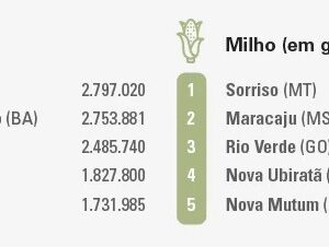 Já Maracaju, em Mato Grosso do Sul, que em 2019 apareceu na 14º posição no ranking dos municípios com maior valor da produção, teve crescimento de 103,2% nesse indicador e alcançou a oitava posição.