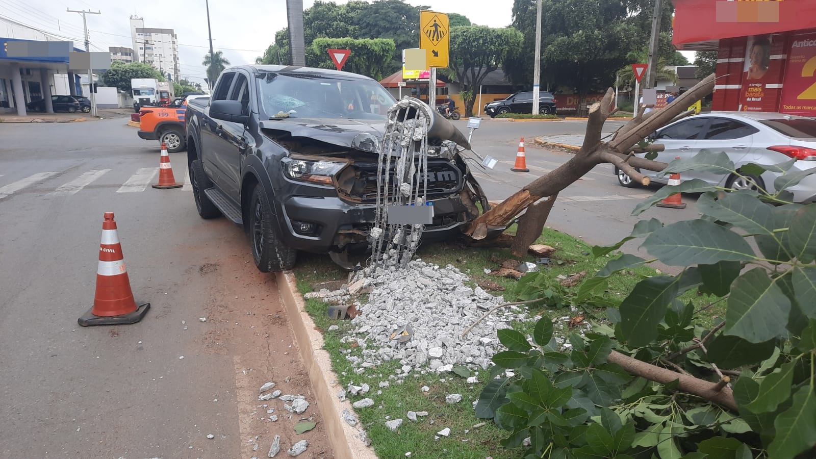 Na madrugada deste sábado (16), um acidente envolvendo uma caminhonete foi registrado no cruzamento da Av. Tancredo Neves coma Dos Imigrantes.