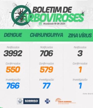 A Secretaria de Saúde divulgou ontem, 18 de junho, o boletim 08/2024 com dados da dengue, chikungunya e zika vírus. Os novos números continuam em ascensão. No boletim desta manhã, são 579 confirmações para chikungunya; 536 para dengue e um para zika vírus. Em relação a Chikungunya, são 242 casos a mais do que o número divulgado há apenas 14 dias atrás, em 5 de junho, quando havia 337 confirmações para a doença. No mesmo boletim, o de 5 de junho, eram 482 confirmações para dengue – 54 a mais hoje. A situação da zika se mantém estável desde o início do ano com um caso.