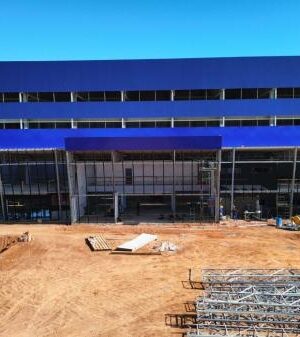 Edificação está recebendo fachada em ACM, vidros e instalações elétricas