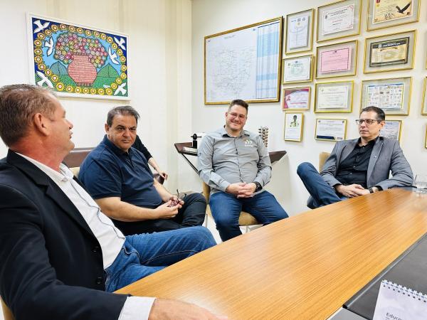 Aumento de servidores e mais agilidade nos processos de emissão da primeira Carteira Nacional de Habilitação (CNH) foram os temas debatidos, em Cuiabá, entre o vereador Leandro Damiani, o vice-prefeito de Sorriso, Gerson Bicego, o diretor de Habilitação e Veículos do Departamento Estadual de Trânsito de Mato Grosso (Detran-MT), Alessandro Andrade, e o responsável pela Ciretran de Sorriso, Edson de Carvalho.