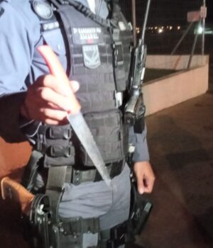 A PM foi acionada e realizaram uma abordagem nos pedestres, momento esse que foi encontrada uma faca com uma das vítimas.