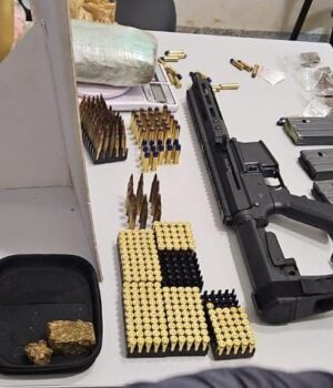 Os militares se deslocaram até o local e encontraram, em duas bolsas camufladas, um fuzil, 446 munições de calibres diversos, quatro carregadores, uma balaclava, uma faca de serra e pouco mais de um quilo de entorpecentes.