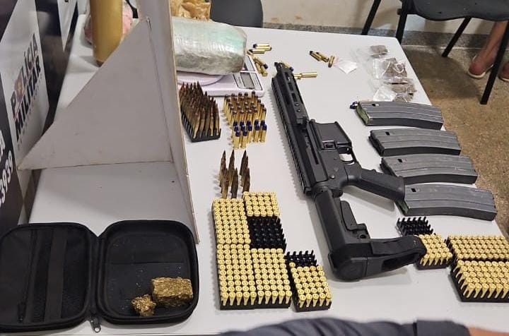 Policiais militares do 12º Batalhão apreenderam, na noite desta terça-feira (22.10), um fuzil, 446 munições de calibres diversos e entorpecentes em duas abordagens no bairro Santa Clara, em Sorriso (396 km de Cuiabá). Um homem, de 25 anos, foi preso por porte ilegal de arma de fogo, tráfico de drogas e associação criminosa.