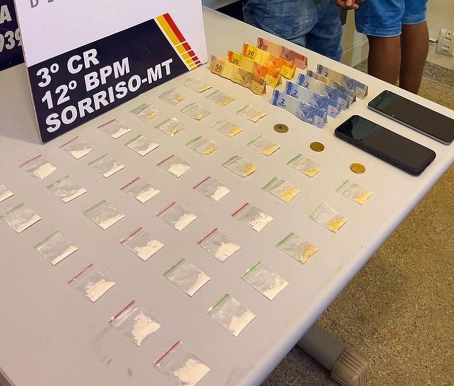 Equipe da Polícia Militar do 12º Batalhão prendeu, na tarde desta terça-feira (05.10), dois jovens de 22 anos, suspeitos por tráfico de drogas no bairro Industrial, em Sorriso.