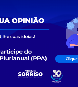 No dia 29 de julho (terça-feira), a Prefeitura promove audiência pública para apresentação do Plano Plurianual 2026-2029. O evento será realizado às 8h, no Auditório Farroupilha, do Centro de Eventos Ari José Riedi, e transmitido pelo canal da Prefeitura de Sorriso no YouTube.