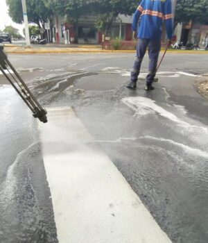 Em um trabalho coordenado por equipes das secretárias de Segurança Pública, Trânsito e Defesa Civil (Semsep) e Obras e Serviços Públicos (Semosp), a Prefeitura de Sorriso deu início ontem (17) a um trabalho de lavagem das faixas de pedestres que contam com a pintura termoplástica.