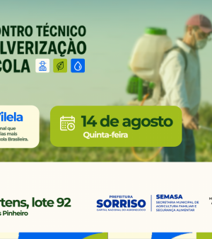 A Prefeitura de Sorriso, por meio da Secretaria Municipal de Agricultura Familiar e Segurança Alimentar, promove nesta quinta-feira (14), a partir das 15h, o 1° Encontro Técnico de Pulverização Agrícola. O evento será realizado no Assentamento Jonas Pinheiro.