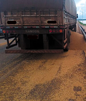 Um motorista de carreta, que transportava mais 46 toneladas de soja, de Sinop para Sorriso, procurou a delegacia para relatar a perda de soja na estrada. Segundo o motorista, ele trafegada com sua acarreta pela BR-163, carregado de soja, quando um caminhonete deu pisca alerta e ele parou a carreta e percebeu que a tampa estourou e que mais de 6 toneladas de soja havia caído no trajeto, sendo perdida na estrada.