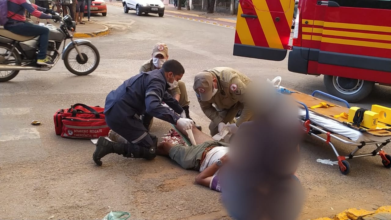 O condutor da moto obteve fratura em uma das pernas, sendo acionado o Corpo de Bombeiros.