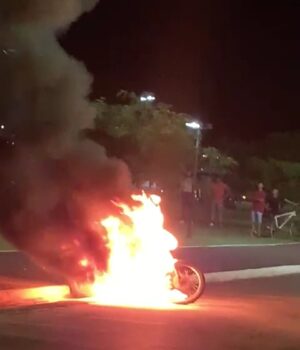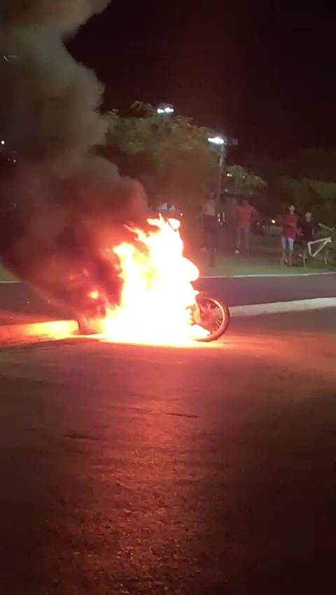 Na noite desta sexta feira (18), uma motocicleta veio a ser incendiada na praça das Fontes, região central de Sorriso.