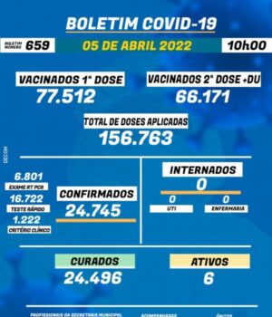 Para o secretário, a queda no número de ativos também se deve ao aumento direto das imunizações; até o momento Sorriso aplicou 156.763 doses de imunizantes na população com cinco anos ou mais. E a vacinação não parou: diariamente são aplicadas doses pediátricas de 05 a 11 anos; 1ª, 2ª e dose de reforço para a população acima de 12 anos; além de ofertar a 4ª dose para pacientes imunossuprimidos e idosos com 80 anos ou mais.