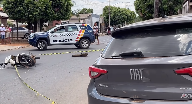 Um acidente de trânsito deixou uma vítima fatal e duas pessoas feridas no final da tarde desta terça-feira (2), no bairro Jardim Primavera, em Sorriso. A batida envolveu uma motocicleta Honda Biz de cor branca e um Fiat Argo cinza.